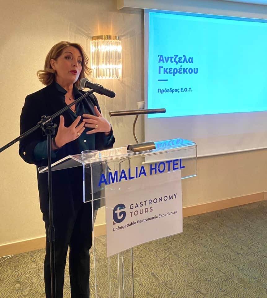 President of the Greek National Tourism Organization (GNTO), Ms. Angela Gerekou, spoke about the persistent efforts of GNTO both centrally and in its offices abroad to transform the national strategy into actions with measurable results, as well as the effort required by the state to persuade producers to highlight their premises as part of the local culture.