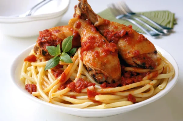 Historically, Greek families prepared it using mature farm roosters, simmering them for hours until the meat was perfectly tender. Today, many cooks substitute chicken, but the rich wine sauce remains the heart of the dish.