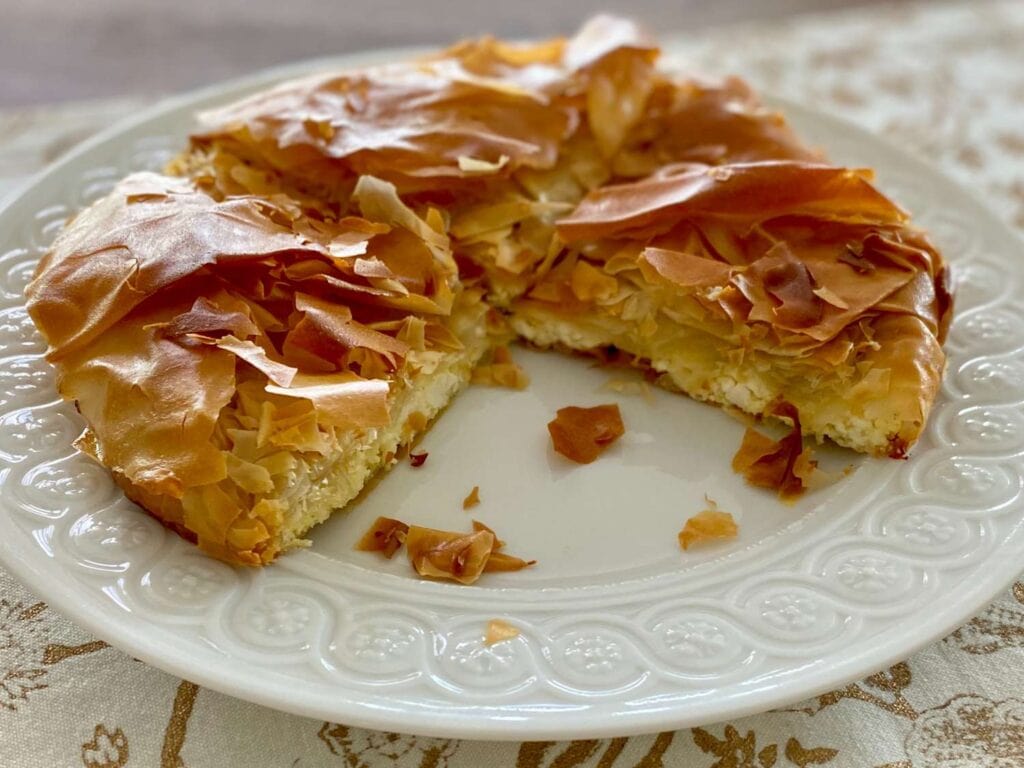 Tiropita: Savory pie with feta, cheese, and egg filling. Delectable on-the-go fast food option.