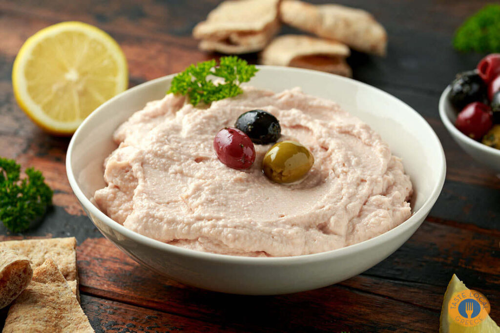 Taramosalata: Savory Greek spread with fish roe, onion, dill, lemon, olive oil. Creamy texture, delightful taste.