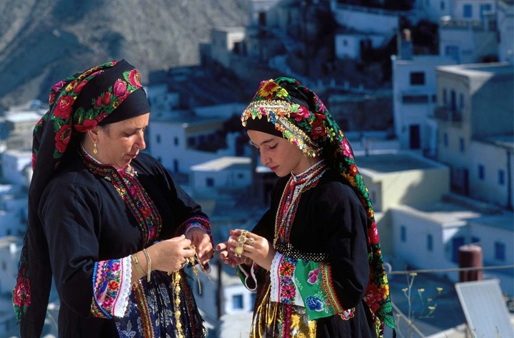 Faithful to the customs and traditions of their ancestors, the people of Karpathos honour the patron saints of their villages during festivals, with lutes, lyres, bagpipes, improvised folk songs (mantinades), dances, and traditional delicacies. Among the most renowned festivals is the one held on the 15th of August, celebrated throughout the island, with the most notable taking place in Aperi, Diafani, Menetes, and Olympos. Women wear exquisitely crafted, colourful traditional costumes, food is offered free of charge, and the festivities continue until dawn.