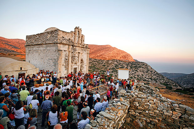 One of the island’s most cherished customs is that of the panigyras — a family who keeps the icon in their home throughout the year, tends to the church it belongs to, and prepares the honeyed pasteli (a sesame treat) served during the festivities.