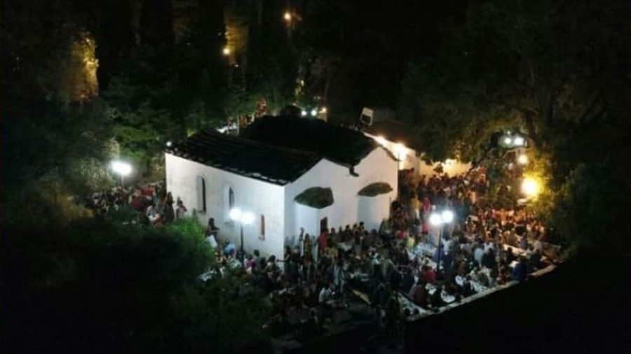 After the liturgy and the Kleidonas rituals, villagers set long tables in the square. Traditional dishes such as roast goat or lamb, meze, cheeses, and fresh vegetables are served alongside local wine and raki. Music from the violin and lute fills the square, and everyone joins in the dancing.