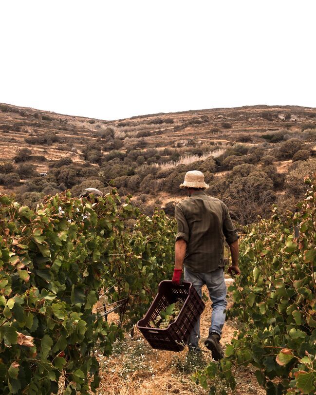 With deep respect for the environment and local tradition, the family planted new vineyards on the island’s signature xerolithia (dry-stone terraces), cultivating native grape varieties such as Potamisi, Rozaki, Assyrtiko, Mavrotragano, and Koumaryano — each expressing the authentic terroir of Tinos.