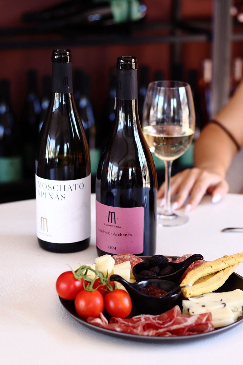 Includes: 4 labels: Moschato Spinas, Vilana, Rosé, PDO Archanes accompanied with local (cheese and cold cuts)