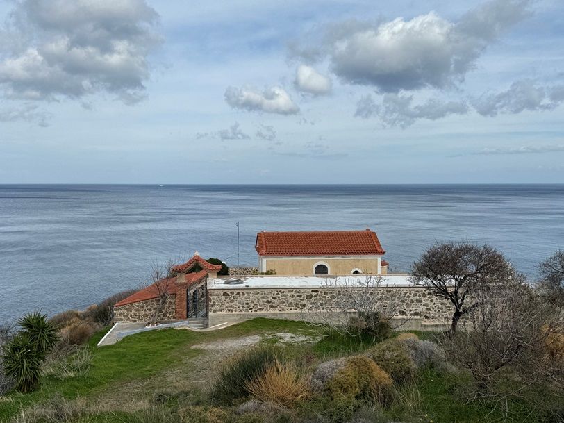 The air is rich with aromas of oregano, balsam (St. John’s Wort), and native herbs. The trail passes small chapels, stone-paved paths, wildflowers, and orchids—especially vibrant in spring—before revealing panoramic views of the untouched Eftychia Beach in Egrigoros.