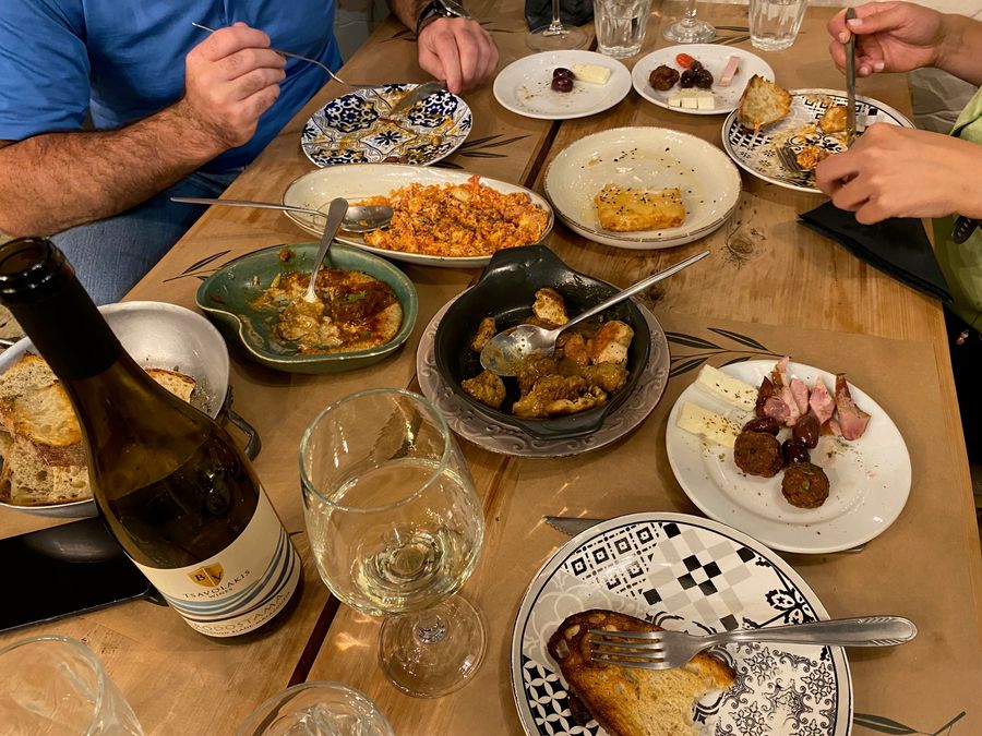End your olive oil journey with a traditional Messinian lunch, featuring seasonal, local ingredients, at a family-run restaurant in Kalamata’s historic center.